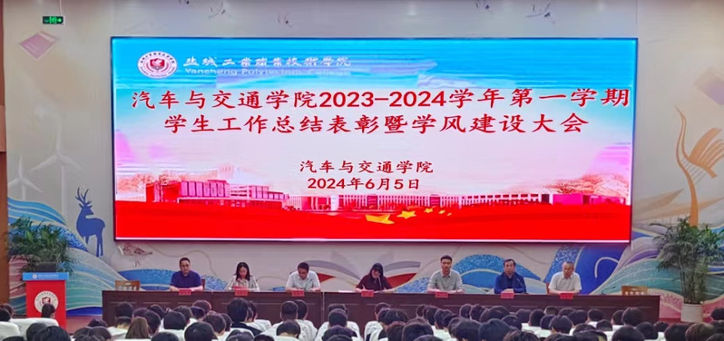 6月5日,汽车与交通学院在学术报告厅举行2023—2024学年第一学期学生工作总结表彰暨学风建设大会。