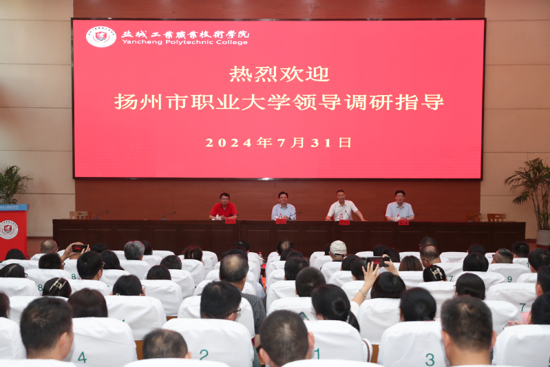 7月31日下午,扬州市职业大学校长周春光一行来校调研交流。我校党委书记邵从清,党委副书记蔺俊热情接待了周春光一行,相关部门负责同志参加调研交流会。会议由邵从清主持。