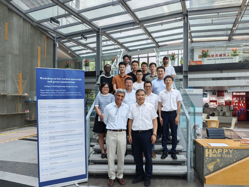 8月23日,Jorge de Brito一行前往同济大学土木工程学院参加《Workshop on low-carbon materials and green construction》学术研讨会。会议围绕研究主题进行了学术分享。会后,Jorge de Brito一行参观了同济大学土木工程防灾减灾全国重点实验室。