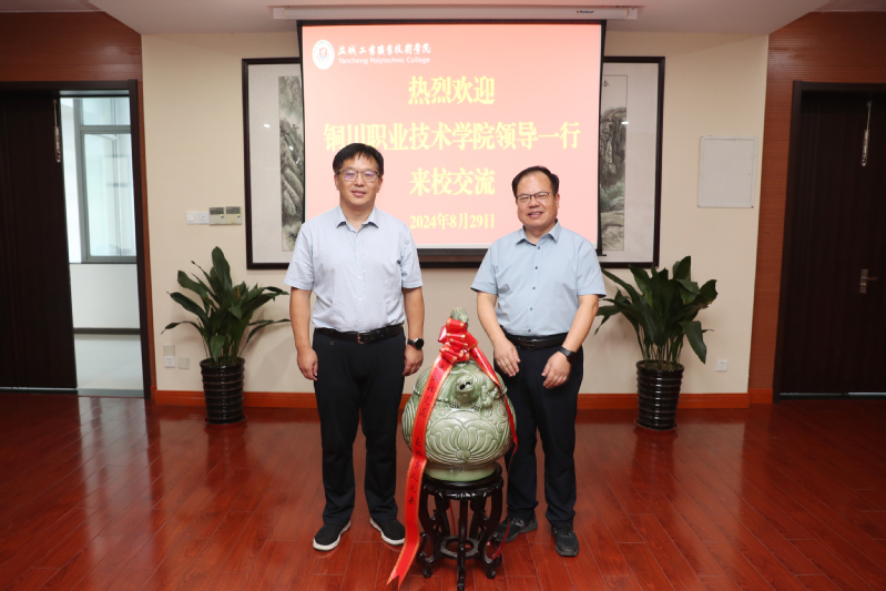 8月29日至31日,铜川职业技术学院党委副书记、工会主席焦锋,组织人事处副处长单显露一行11人来校学习交流。校长刘玉申热情接待了焦锋一行。