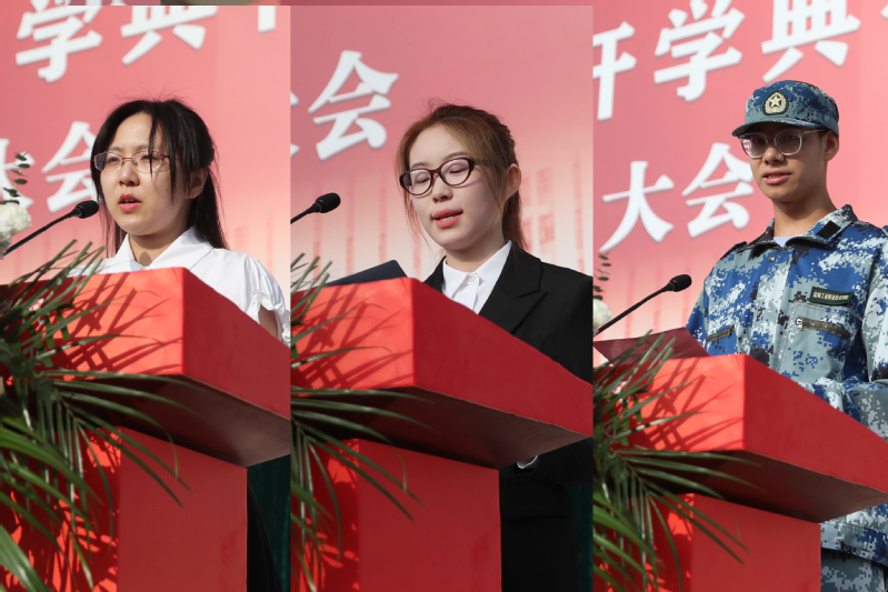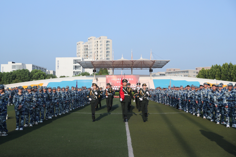 副校长王曙东宣布了军训组织机构名单。与会校领导为2024级新生代表配发校徽。教师代表、老生代表、新生代表依次进行了交流发言。