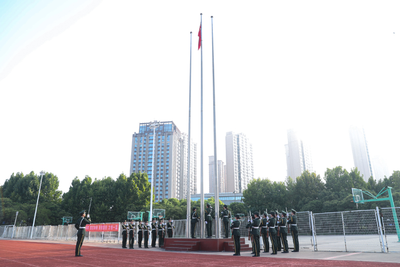 上午7时整,升旗仪式正式开始,在庄严的国歌声中,鲜艳的五星红旗冉冉升起。