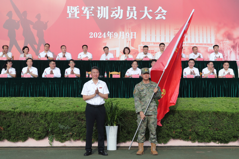 金秋煦暖萃英美,苗木成林迎新来。9月9日,学校在田径场举行了2024级新生开学典礼暨军训动员大会。党委书记邵从清出席会议并代表学校向军训团团长授予了军训团团旗。大会由党委副书记蔺俊主持。