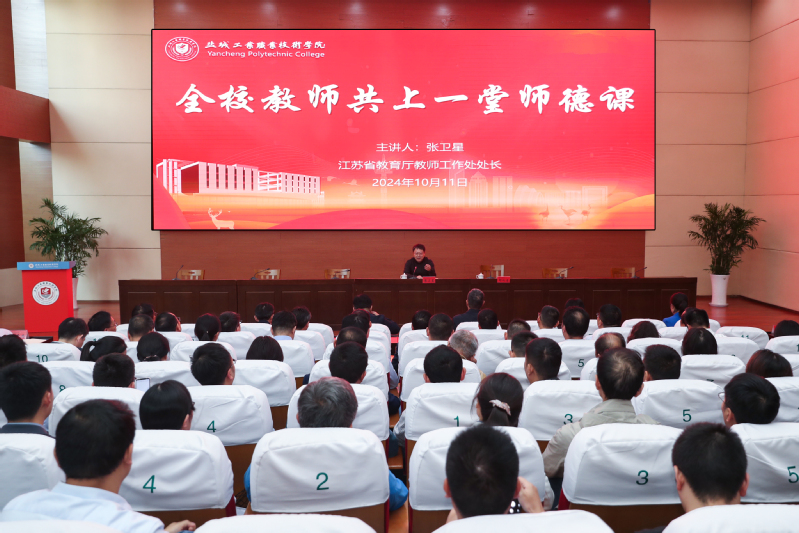 在深入学习贯彻党的二十届三中全会和全国教育大会精神之际,10月11日下午,学校在学术报告厅举行“全校教师共上一堂师德课”活动。江苏省教育厅教师工作处处长张卫星应邀授课,活动由校党委书记邵从清主持。