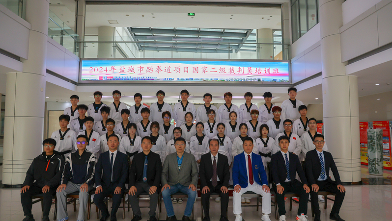 盐城市体育局、跆拳道协会将跆拳道项目国家二级裁判员培训基地建在我校,是对学校的充分信任和对体育工作的大力支持,为学校社体专业深化产教融合奠好基础。