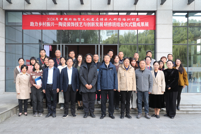 11月7日上午,由文化和旅游部、教育部、人力资源和社会保障部联合实施的2024年中国非物质文化遗产传承人研修培训计划“助力乡村振兴——陶瓷装饰技艺与创新发展”研修班圆满结束。文化和旅游部非物质文化遗产司原一级巡视员马盛德,学校党委书记邵从清,盐城市文化广电和旅游局党委委员、副局长朱超出席结业仪式并讲话。学校相关职能部门负责同志,25名学员参加活动。校长刘玉申主持结业仪式。