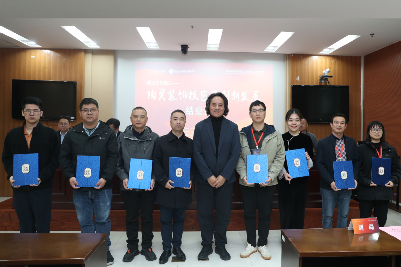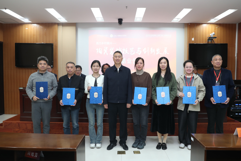 邵从清对研修班的圆满结业表示热烈的祝贺,对所有研修班学员、教师及工作人员表示衷心的感谢。他鼓励学员们要继续保持对传统文化的敬畏之心,深入挖掘陶瓷装饰技艺的历史文化底蕴,不断推陈出新,创造出更多具有时代特色和艺术价值的作品。他希望学员们能够积极投身乡村振兴事业,将所学技艺应用于实际生活,为乡村文化繁荣与发展贡献力量。他表示,学校将继续关注和支持非遗传承人的培养与发展,为学员们提供更多的学习交流平台,共同推动非遗的传承与创新。