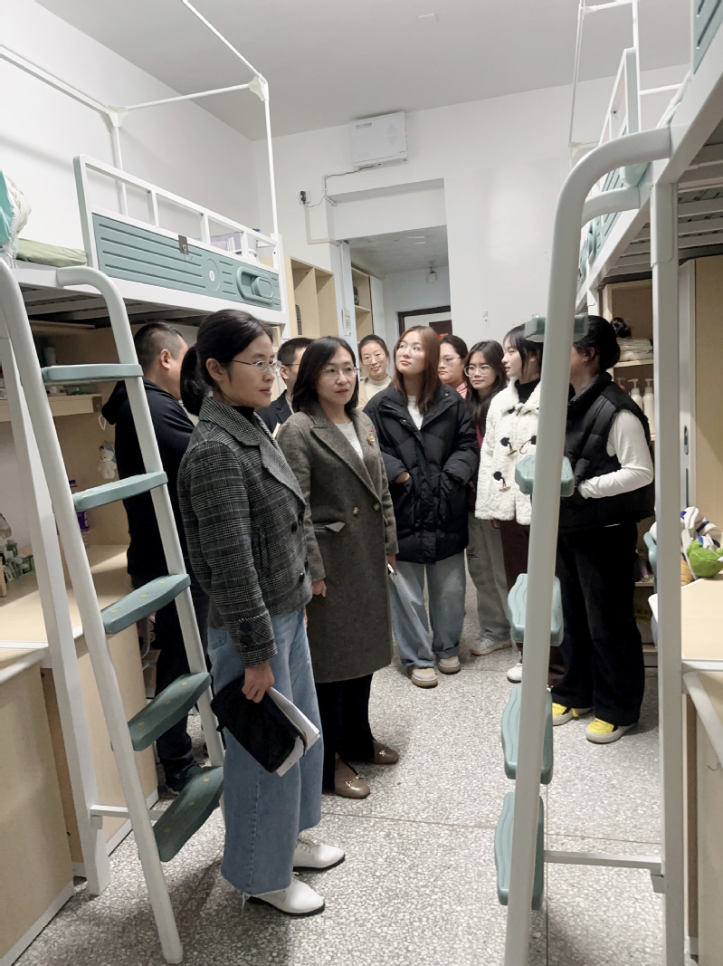 座谈会后,顾玉萍走访了室内2411班9614宿舍,与同学们亲切交谈,详细了解宿舍每位同学的情况,叮嘱大家珍惜大学时光,做好学业规划,练就过硬本领。