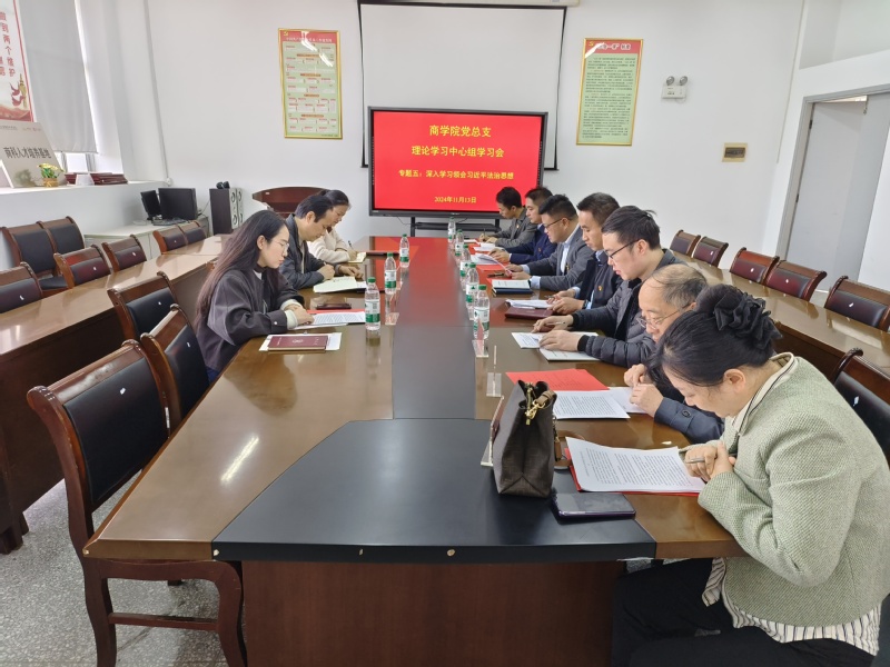 11月13日下午,商学院党总支在301会议室召开理论学习中心组学习会,学校第一巡学旁听指导组组长郭泽忠、成员张伟、祁娟娟到会巡学旁听。商学院党总支理论学习中心组成员参加学习。学院党总支副书记、院长周荣虎主持会议。