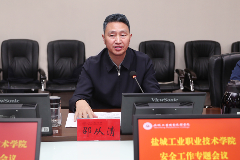 11月18日下午,学校在图文信息中心第一会议室召开安全工作会议,党委书记邵从清、校长刘玉申出席会议并讲话,副校长王曙东主持会议。