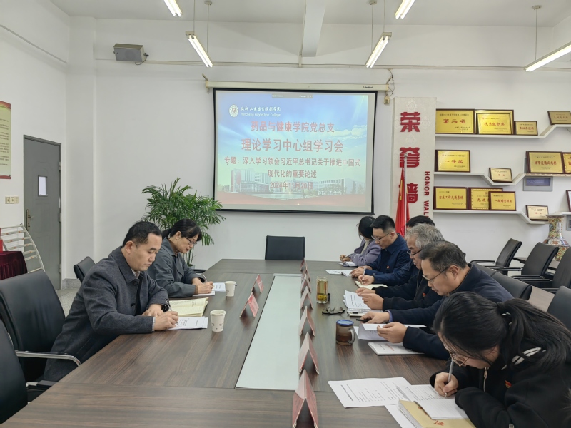 11月20日下午,药品与健康学院党总支在学院305会议室召开党总支理论学习中心组学习会,专题学习深入学习领会习近平总书记关于推进中国式现代化的重要论述。学校第三巡学旁听指导组组长杨彦,成员毛雷到场巡学旁听。学院党总支理论学习中心组全体成员参加会议,党总支书记陈瑜主持会议。