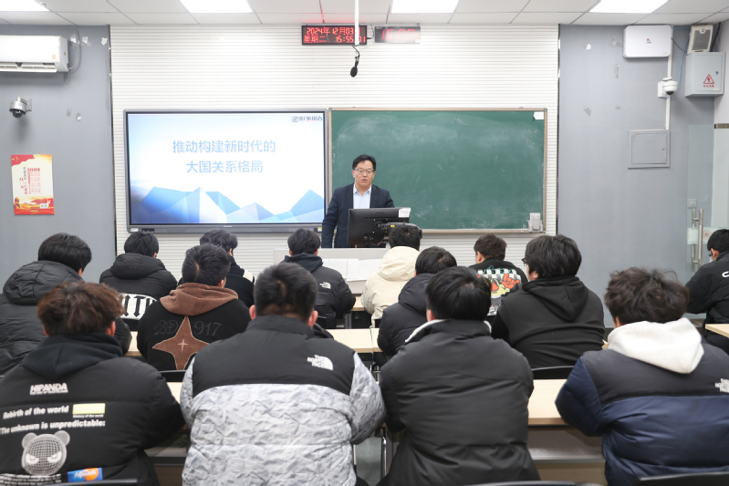 12月3日下午,校长刘玉申以《推动构建新时代的大国关系格局》为题,为智能制造学院机设2411班学生讲授“形势与政策”课。