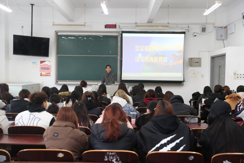 12月4日,副校长陈宏武以《坚定前行谋统一 续写民族新辉煌》为题,为商学院会计2431、会计2432班学生讲授“形势与政策”课。