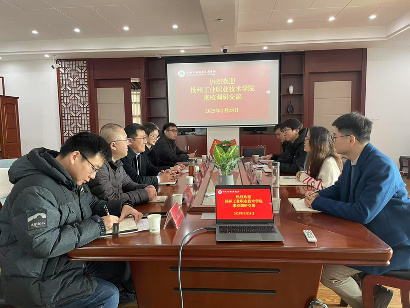 2月28日上午,扬州工业职业技术学院科技处处长杨润贤一行来校调研交流。副校长徐桂中热情接待了杨润贤一行。