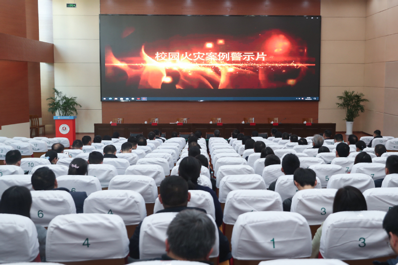 会上,与会人员观看了《校园火灾案例警示片》。全体校领导、中层干部和学校外包服务单位代表参加会议。