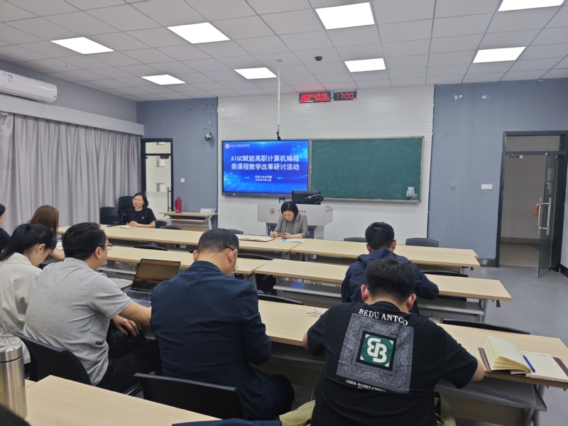 为推动高职计算机编程类课程教学改革,探索 AIGC 技术在教学中的应用,提升教学质量和学生实践能力,信息与安全学院于5月14日在2301开展了AIGC 赋能高职计算机编程类课程教学改革研讨活动。学院全体任课老师参与了此次活动,活动由夏利玲副院长主持。