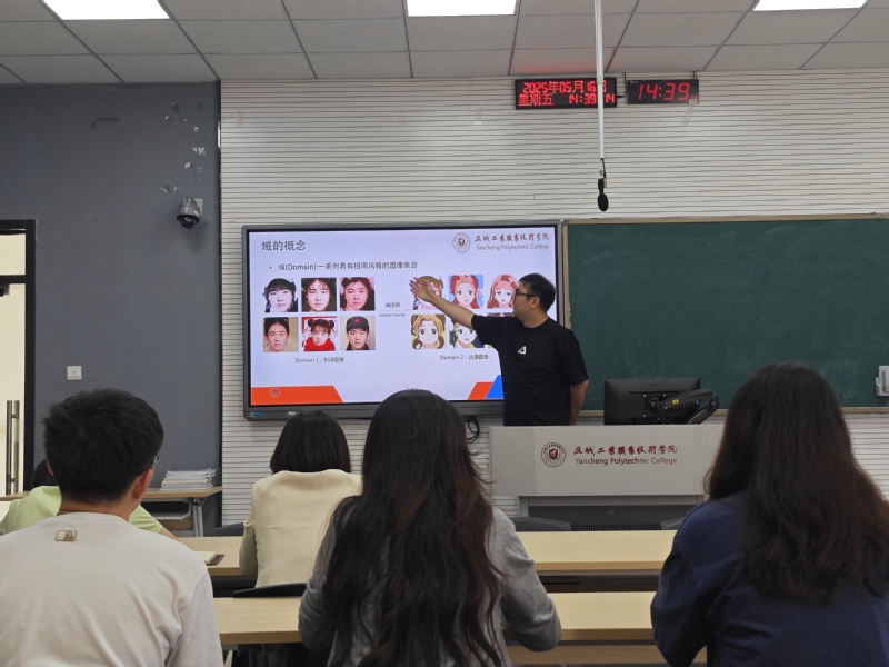 学院徐乐老师详细介绍了神经网络在图像翻译中的关键作用。以图像风格迁移为例,说明神经网络如何通过对抗训练让不同风格图像完美融合,提及神经网络在数据生成方面的优势。分享了自主研发的妆容迁移项目,运用神经网络技术,实现不同妆容风格在人脸图像上的自然迁移。解决了如妆容特征精准捕捉、人脸结构不变形等难题。现场展示的迁移前后对比图像,效果逼真、自然,引发老师们浓厚兴趣。