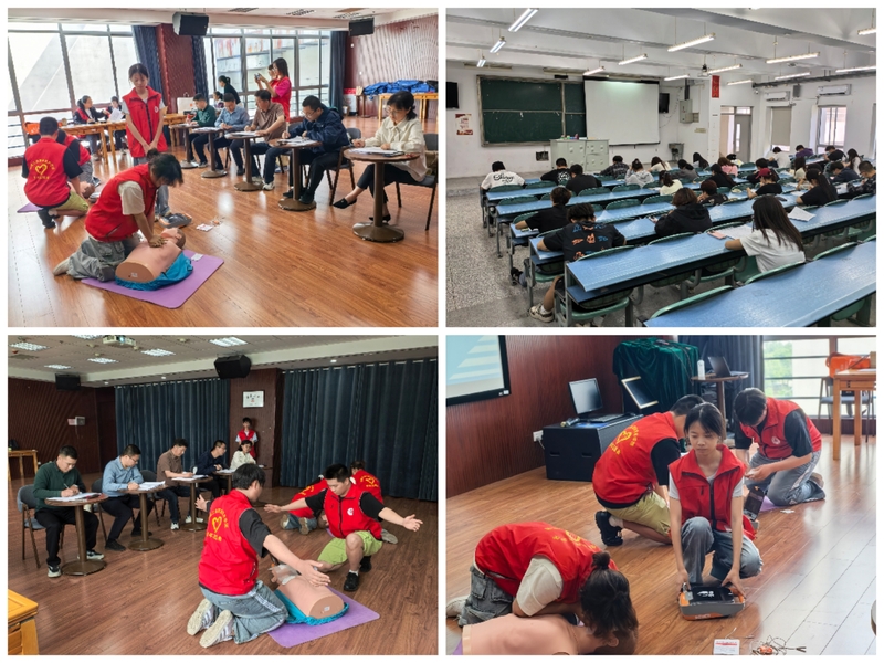 本次竞赛有各二级学院的10支队伍同台竞技,分理论知识考核和实操技能比拼两个环节。理论知识考核中,选手们沉着冷静,展现出扎实的应急救护知识储备。实操技能中,选手们以娴熟的操作、规范的流程对“伤员”进行应急救护。