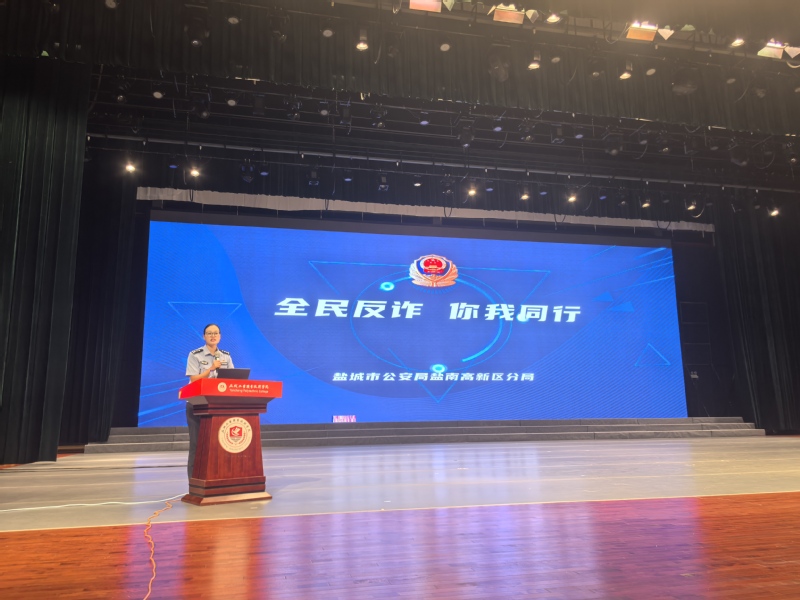 为提升全体师生防诈反诈意识,建立财产安全防护屏障,9月24日,智能制造学院联合盐城市公安局盐南高新区分局在大学生活动中心礼堂举办防诈骗专题讲座。科城派出所警官杨蓉蓉应邀主讲。