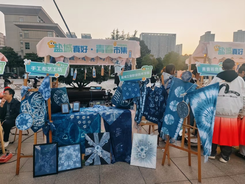 在创意市集展区,学校艺术设计学院手工布艺工坊将学子们在非遗扎染领域的丰富创作成果一一呈现。社团成员们热情地向来自全市的新生代表讲解扎染工艺的历史渊源与制作流程,让新生们近距离感受非遗魅力。