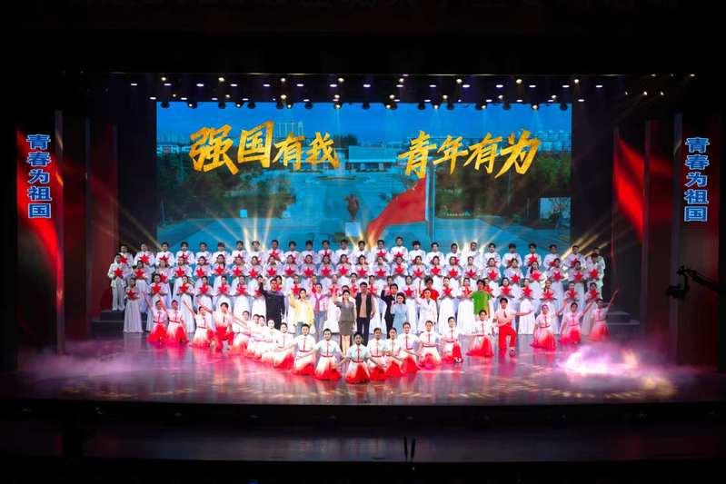 晚会上,学校原创舞蹈《镌刻初心》与江苏省杂技团、建湖淮剧团共同合作演绎的城市文化展演《盐风潮韵》,展现了非遗瓷刻、杂技与淮剧的美妙邂逅,彰显出“非遗焕新声,文脉润初心”的青春传承。时代报告剧《青年说》节目中,在中国国际大学生创新大赛(2024)总决赛中斩获金奖的我校学生代表分享了在比赛中的收获与感悟,勉励学弟学妹“勤奋学习、刻苦钻研,立志做高素质技术技能人才,为中国式现代化江苏新实践奉献青春磅礴动能。此外,学校青年学子激情演绎谢幕歌舞《强国有我》,用青春的誓言唱出对祖国最深情的告白。