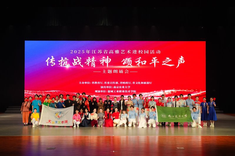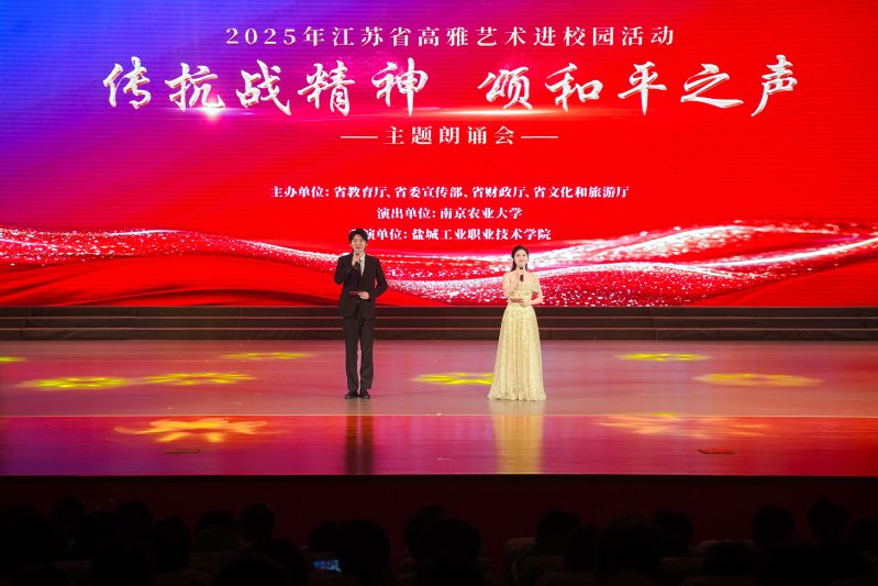 11月16日,2025年江苏省高雅艺术进校园活动——南京农业大学专场朗诵会“传抗战精神 颂和平之声”在学校大学生活动中心礼堂成功上演。