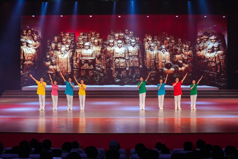 在第一篇章“追寻光”中,作品《新的长城》《铸》《西迁》接连上演,表演者以铿锵有力的语调,勾勒出民族危难中不屈的精神图谱,引领观众“追寻”那段永不褪色的民族记忆。在第二篇章“沐浴光”中,舞蹈《风声》、原创情景朗诵《誓言》、婉约悲壮的《旗袍言芳华血》与经典名作《呼兰河传》以细腻笔触诉说岁月温情,让观众在光影流转间感受希望与力量的浸润。在第三篇章“成为光”中,《银杏记得》《青春的阵线》《可爱的中国》《青春向祖国报告》等经典诵读作品表现出当代青年的热血担当,以激昂声韵传递信心与力量。