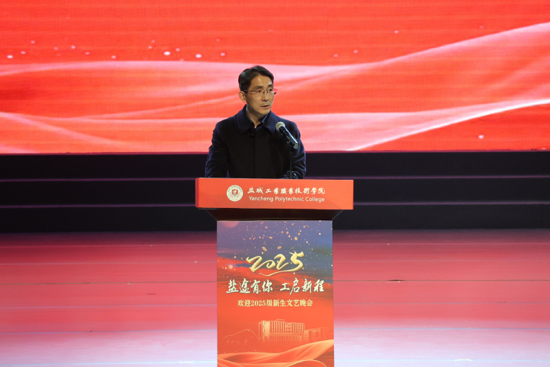 11月21日,“盐途有我 工启新程”欢迎2025级新生文艺晚会在学校大礼堂举办。副校长陈宏武出席活动并致辞。