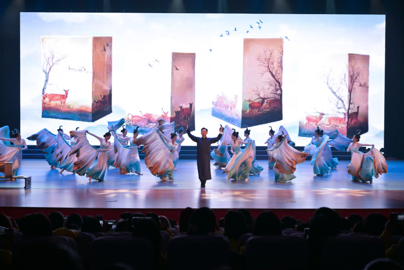 第一篇章“赓续·承薪火”中,情景剧《觉醒》再现了百年前先进青年用鲜血和生命“点燃”时代的觉醒;歌伴舞《如愿》诉说着先辈们许下的赤诚心愿;情景朗诵《青春作答》将一段跨越时空的青春对话娓娓道来。第二篇章“相聚·耀盐工”中,幕布剧《与你有约》演绎了新生与盐工院温情的“约定”;歌曲联唱《最美的相遇》带领观众们一同在音符里回味相遇的感动;舞蹈《镌刻初心》让瓷刻传统文化在舞动光影中绽放新彩。第三篇章“挺膺·向未来”中,青春动感的模特走秀《似锦繁花》、充满异域风情的歌舞串烧《丝路韵》、英姿飒爽的跆拳道表演《青春当“燃”》将晚会推向一个又一个高潮,引得现场观众阵阵喝彩。尾声歌伴舞《强国有我》表达了青年学子对时代的庄严应答,对青春的无悔告白。晚会在全场大合唱校歌《追逐梦想》中落下帷幕。