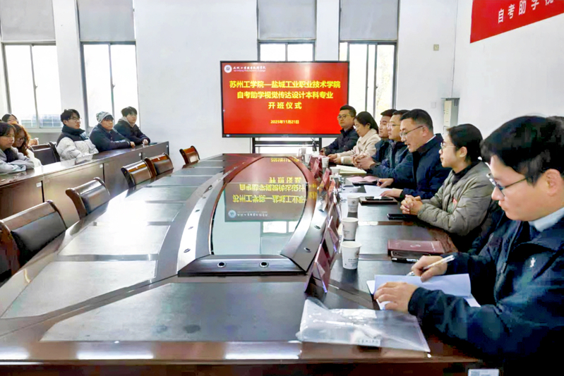 11月21日上午,苏州工学院与学校自考助学视觉传达设计本科专业开班仪式在艺术设计学院310会议室举行。苏州工学院纺织服装与设计学院党委书记颜井平,副院长黄雪茹,副教授高春玲,自考助学办公室主任刘海洋,学校艺术设计学院、继续教育学院负责同志和视觉传达设计专业2025级全体师生参加活动。