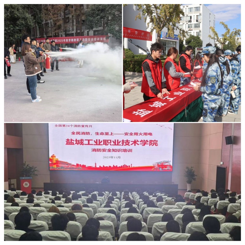 活动期间,保卫处在校内公共场所布置了消防安全宣传横幅、专题展板和海报,发放了消防安全知识手册,举办了消防知识专题讲座,分别为教职工和外包服务人员开展了消防灭火实操培训,联合盐南消防大队组织了2025级新生消防应急疏散演练及灭火器材实操培训。各二级学院组织学生收听观看了消防安全警示视频,召开了消防安全主题班会,开展了各重点部位火灾隐患大排查大整治行动。