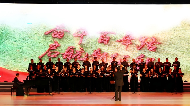 合唱组歌《奋进新时代》奏响时代华章。领唱合唱《嫦娥与我》以空灵之音描绘航天梦想,《高铁来了》以明快节奏展现中国速度与乡村振兴的壮美图景,混声合唱《我向往》抒发对美好未来的无限憧憬,领唱合唱《金不换银不换》诠释了绿水青山就是金山银山的深刻内涵,《一个都不能少》以脱贫攻坚为主题,唱响共同富裕的坚定信念,《新时代的光芒》以全场大合唱的形式,讴歌伟大复兴的壮阔征程。整场演出以音乐为笔,绘就了一幅从历史走向未来的时代画卷。