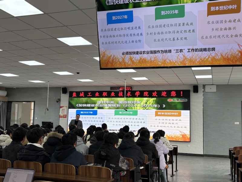 刘基以习近平总书记11月7日到广东梅州雁洋镇南福金柚种植基地察看柚子及其加工产品、文创产品为切入点,阐释为什么要建设农业强国,建设什么样的农业强国,怎样建设农业强国以及建设农业强国的盐城新实践,以生动详实的案例启发引导学生,回应学生现实关切,进一步激发学生的爱国情怀和使命担当。