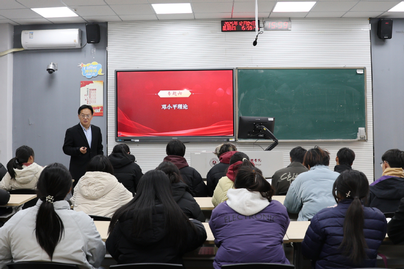 12月4日,校长刘玉申以《邓小平理论》为主题,为商学院物流2511班的学生讲授“毛泽东思想和中国特色社会主义理论体系概论”课。