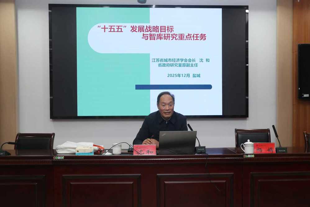 12月24日上午,江苏省城市经济学会会长沈和教授应邀来校作题为《“十五五”发展战略目标与智库研究重点任务》的专题讲座。