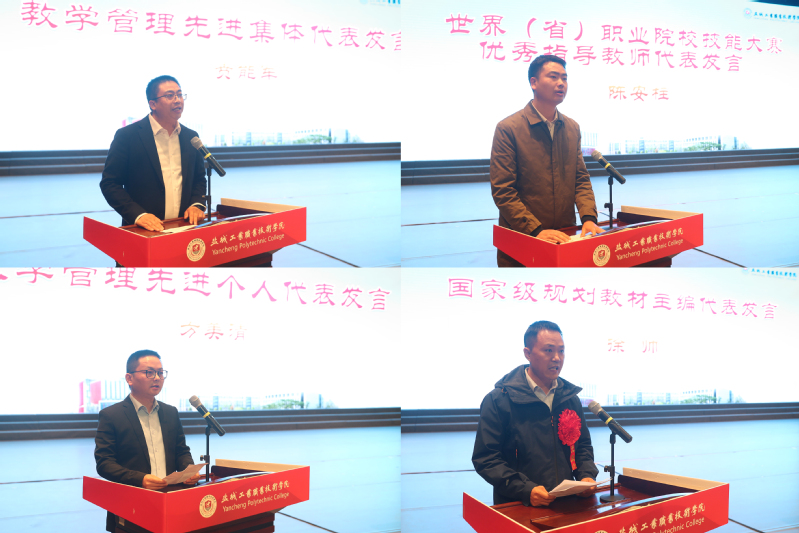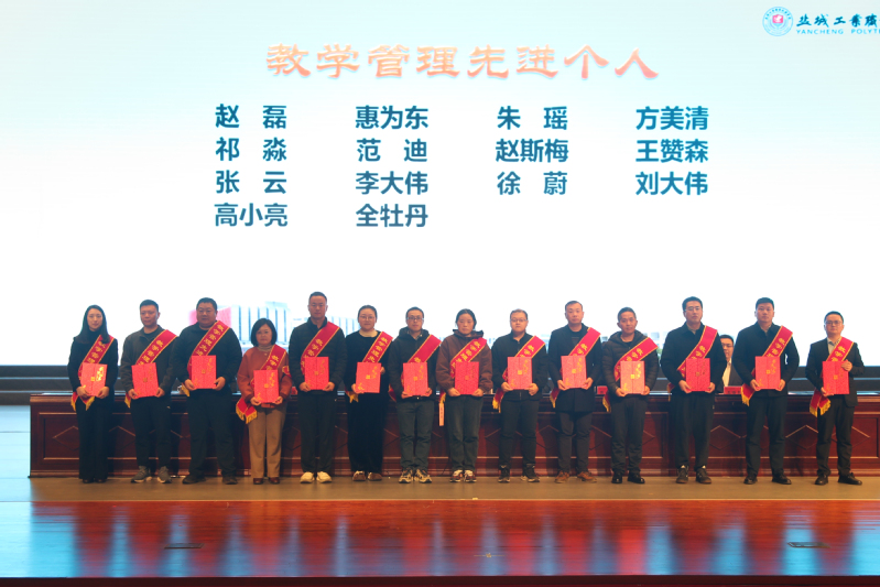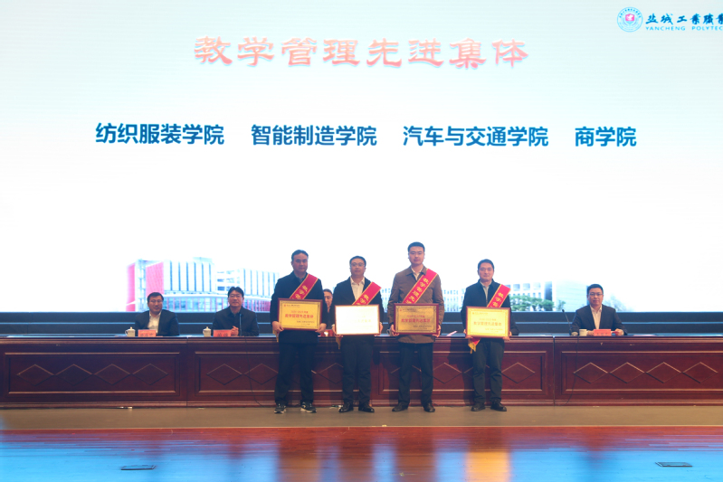 党委副书记蔺俊宣读表彰决定、奖励和授牌名单。与会领导为受表彰的教学管理先进集体和个人、技能大赛及教学能力比赛优秀指导(获奖)教师、国家级规划教材主编和在线精品课程负责人代表颁奖,并为省高水平专业群、现代产业学院、郑和学院授牌。