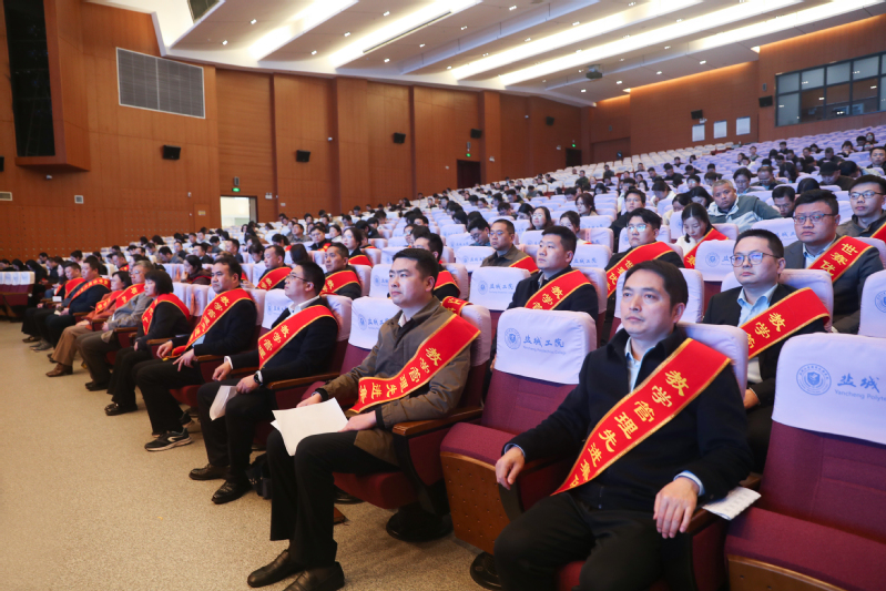 在盐校领导及全体教职工参加大会。