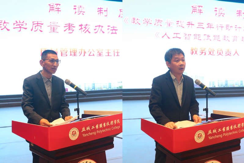 质量管理办公室和教务处负责同志,分别就《教学质量考核办法(修订)》《教学质量提升三年行动计划(2026-2028年)》和《人工智能赋能教育教学行动方案》进行了解读。智能制造学院、艺术设计学院、汽车与交通学院负责同志及纺织服装学院教师,结合各自工作职责,围绕教学工作进行了交流发言。