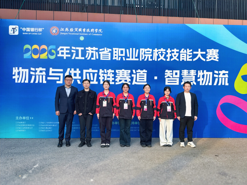 4月8日至10日,2026年江苏省职业院校技能大赛智慧物流赛项在江苏经贸职业技术学院举行。来自全省27所高校的108名学生选手同台竞技。经过激烈角逐,我校商学院霍虹洁、王振蓉、金瑞琳、袁灵悦4位同学在教师周荣虎、刘廷雨、陈月新及智慧物流教学团队的指导下,荣获省一等奖,并取得全省第二名的优异成绩。