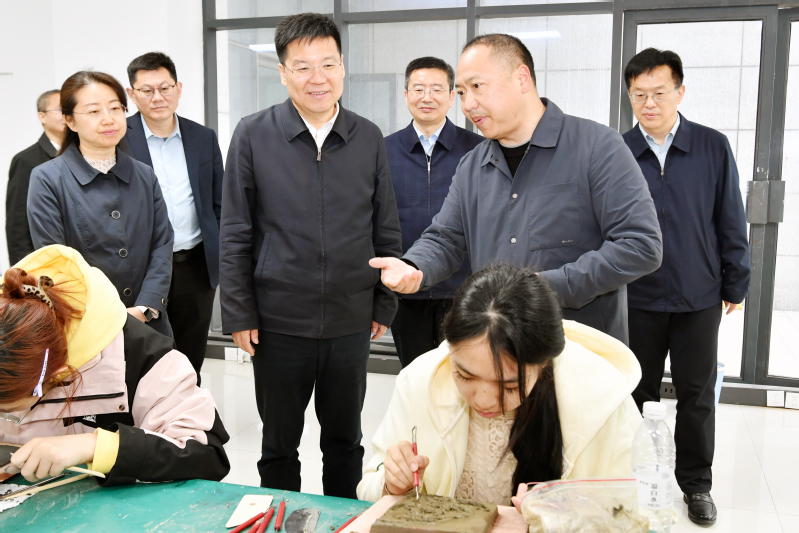 调研期间,严汉平实地察看了学校工业中心、盐城非遗学院瓷刻展示体验馆等场所。他强调要深入学习贯彻习近平总书记关于教育的重要论述,以服务经济社会发展为目标,加快推动职业教育高质量发展,不断提升办学水平,持续深化产教融合,着力构建现代职业教育体系,培养更多盐城发展所需的高素质技术技能人才,为深化科技创新和产业创新融合发展提供智力支撑,切实让学生成才、产业升级、城市发展同频共振。他勉励学校要牢牢把握服务发展、促进就业方向,把更多实训基地建到企业、项目上,拓展学生就业创业渠道,培养更多符合新型工业化需要的高技能人才。
