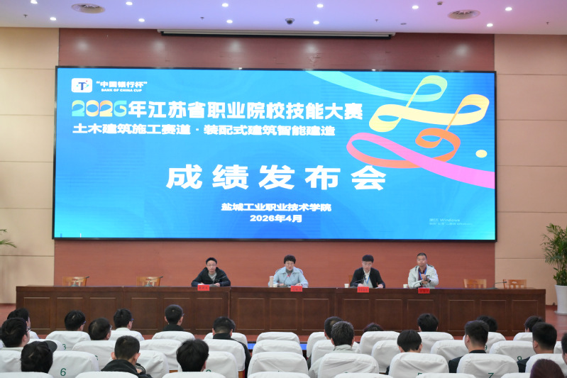 4月17日至19日,2026年江苏省职业院校技能大赛土木建筑施工赛道“装配式建筑智能建造”赛项在学校顺利举行。来自全省高职院校的19支队伍、共计57名选手同台竞技。我校建筑工程学院吴彦文、张自昂、张旭同学在吴春杨、李达两位指导老师及智能建造团队的精心指导下荣获一等奖。