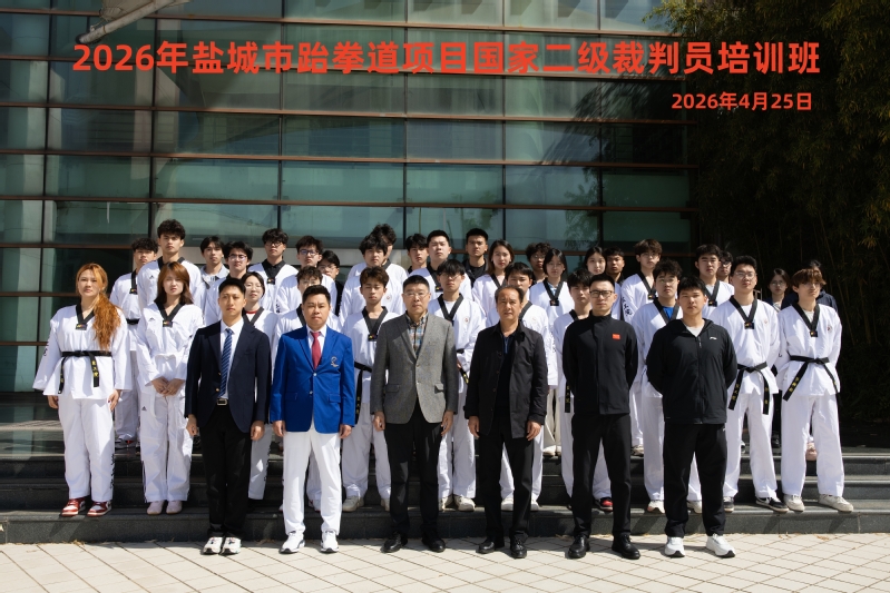4月25日上午,2026年盐城市跆拳道项目国家二级裁判员培训班在学校顺利开班。本次培训由盐城市跆拳道协会主办,盐城工业职业技术学院体育学院承办。盐城市跆拳道协会秘书长刘必勇、市跆拳道协会副秘书长申永权、方炜、滕其壮等领导出席开班仪式,滕其壮主持开班仪式。